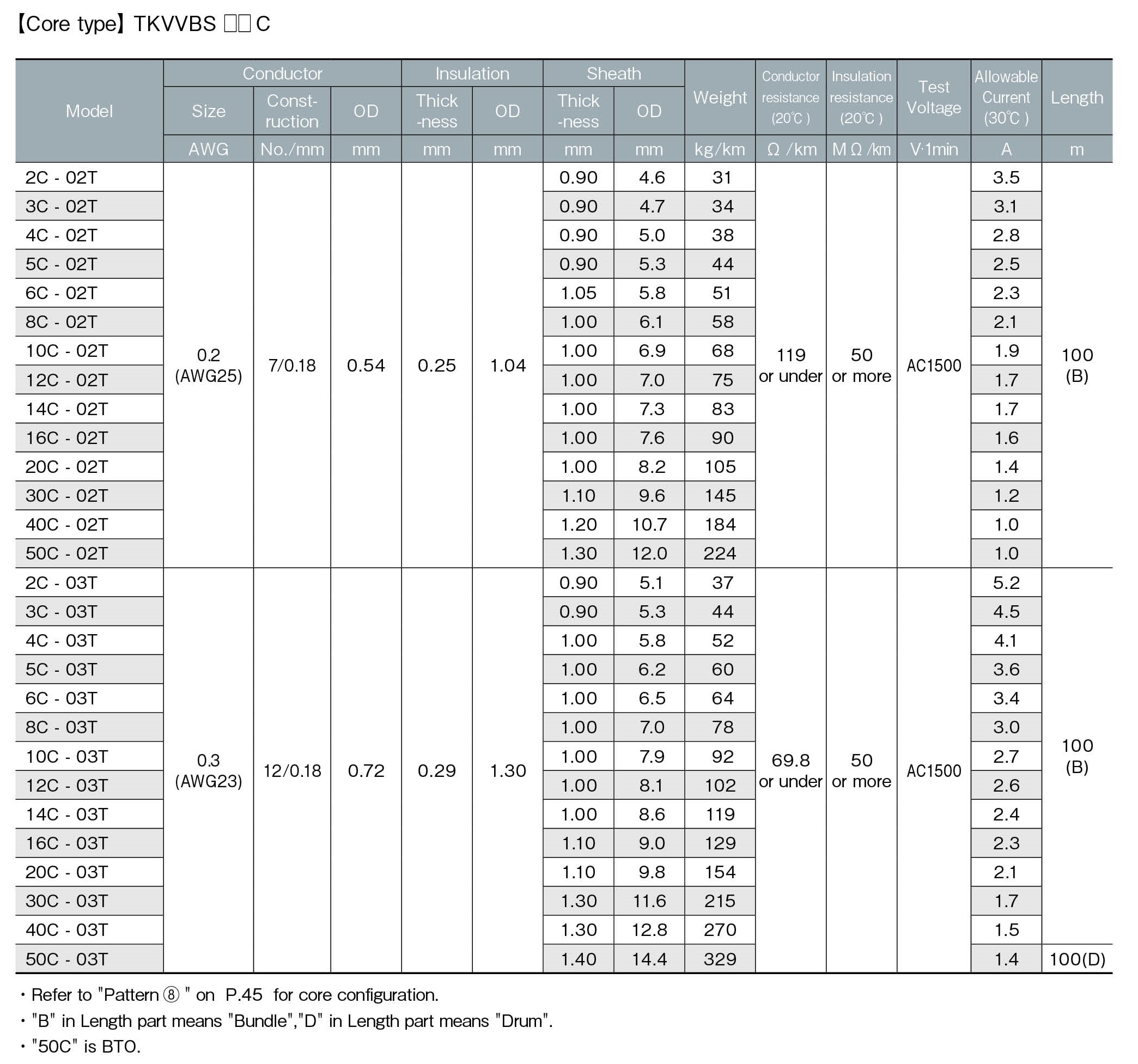 ・Core types are black sheath, Twisted-pair types are gray sheath.